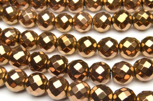 ヘマタイト 64面カット ブロンズカラーコーティング 8mm 1連(約38cm)[R1725-8]