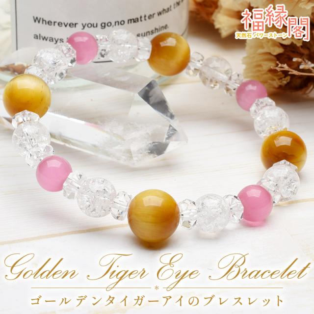 パワストーン 天然石 ゴールデンタイガーアイ クラック水晶 レディース メンズ ブレスレット 金運・仕事運_A619