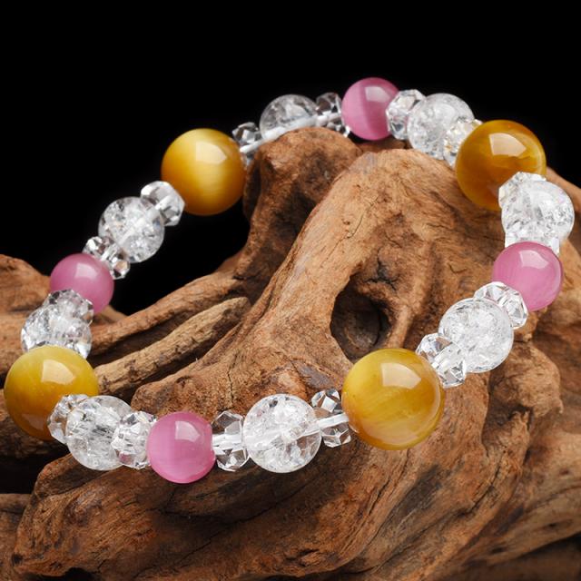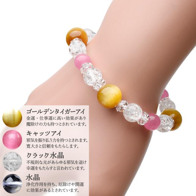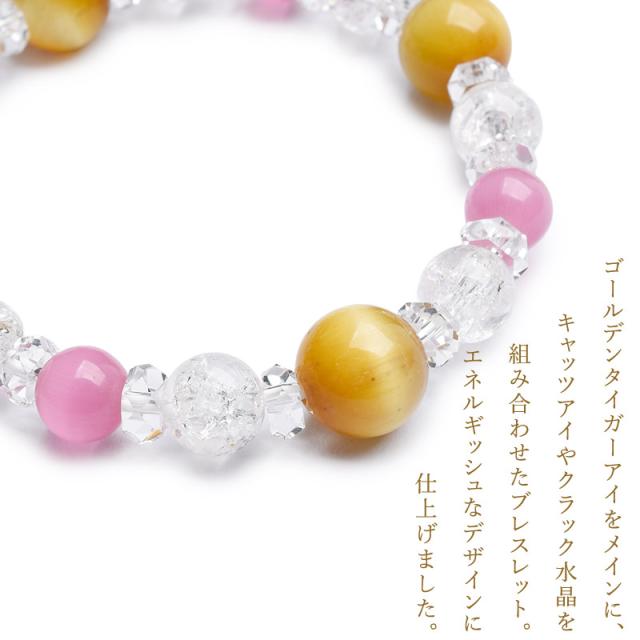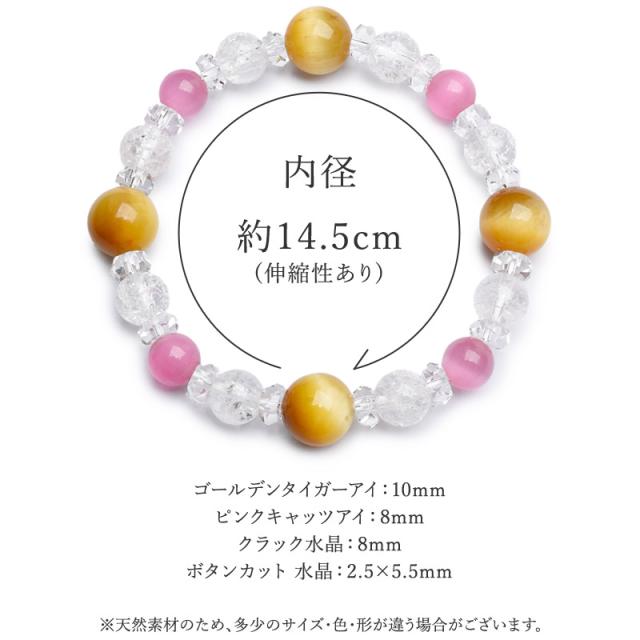 | 材質 | ?ゴールデンタイガーアイ 10mm ?ピンクキャッツアイ 8mm ?クラック水晶 8mm ?水晶ボタンカット 2.5x5.5mm |