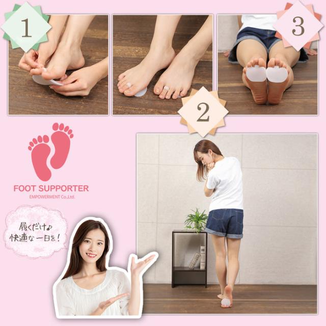 底まめ、タコ、ウオノメなどができて痛い時に、衝撃吸収し足裏をサポートし、痛みの原因をやさしく包みます。