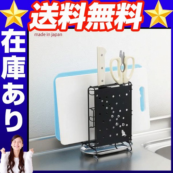 クロネコキッチン包丁・まな板・キッチンばさみスタンド キッチンばさみ 黒猫キッチンシリーズ まな板立ておしゃれ 包丁 送料無料