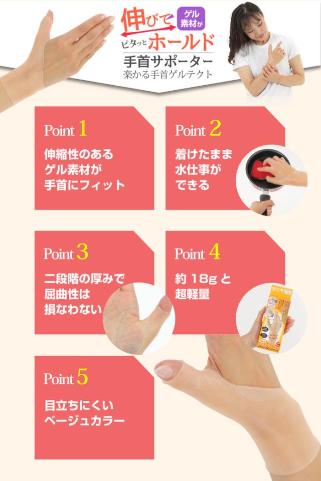 楽かる 手首ゲルテクト 手首を保護 手首サポーター 手首ゲルテクト サポーター 手作業 ストレスフリー 手の疲れ ハンド 手首サポ | ◆