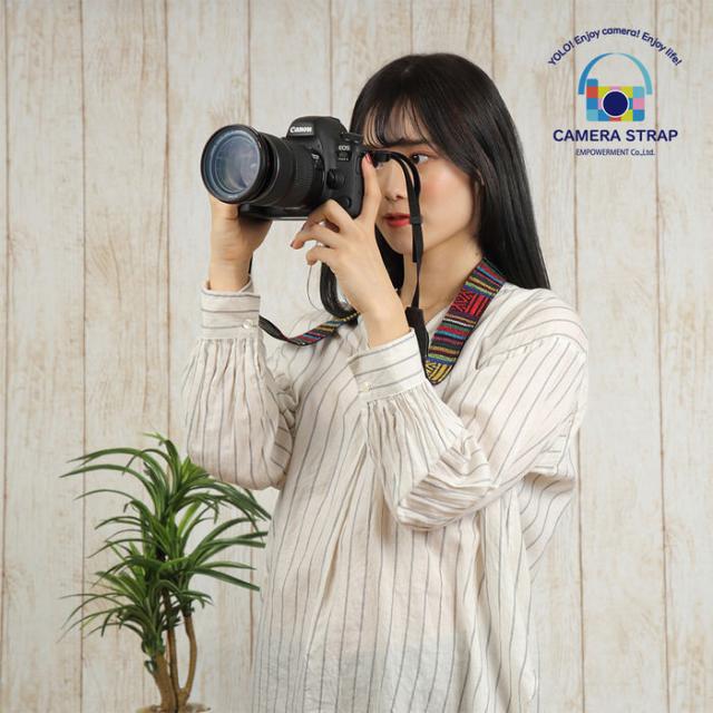 マルチカラーのエスニック民族調カメラストラップです。マルチカラーですので、様々なファッションにぴったりです。