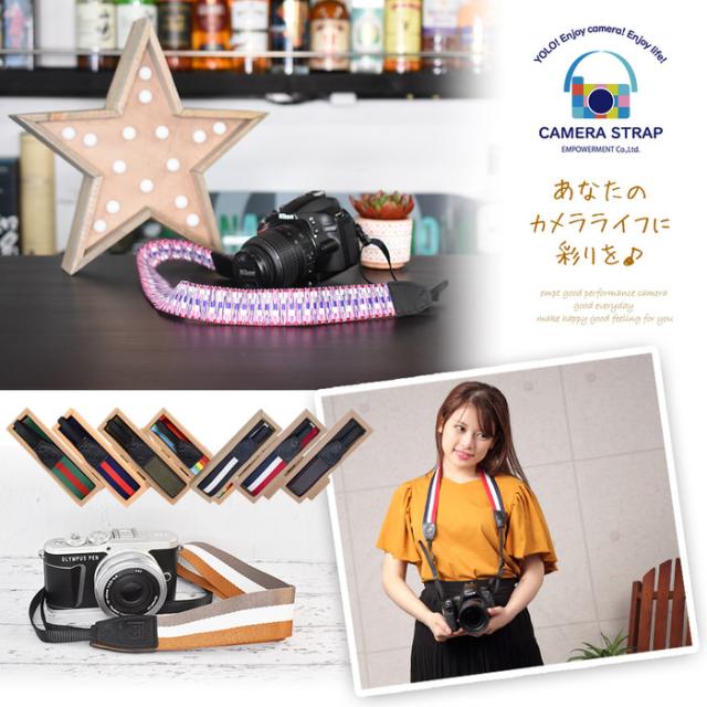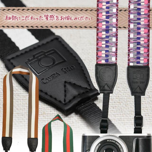 カメラストラップ おしゃれ かわいい 20色| 斜めがけ 一眼レフ ミラーレス一眼レフ コンデジ 対応 キャノン ニコン オリンパス ソニー ミラーレス一眼レフにぴったり カメラ女子 カメラマン カメラ ストラップ 一眼 ストライプ 女子 送料無料