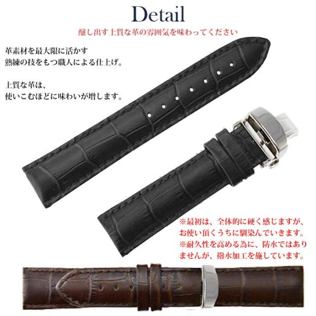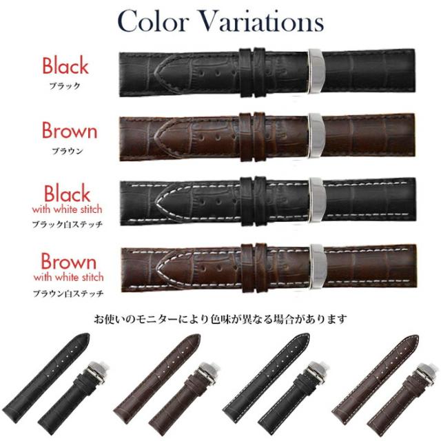 ■ 商品説明 : 当店 の 一押し フラッグシップ モデル です。 定番 の クロコダイル 型押し レザー ブラック ブラウン に、 ステッチ は 同色 と ホワイト の2種類。そこに Dバックル ( dバックル ) プッシュロック タイプ を合わせました。他の ラインナップ に比べてお値段が高くなってしまい申し訳ございません、 ご満足 頂ける品に 仕上ました。是非、一度、お手にとってもらえると嬉しいです。よろしくお願いします。
