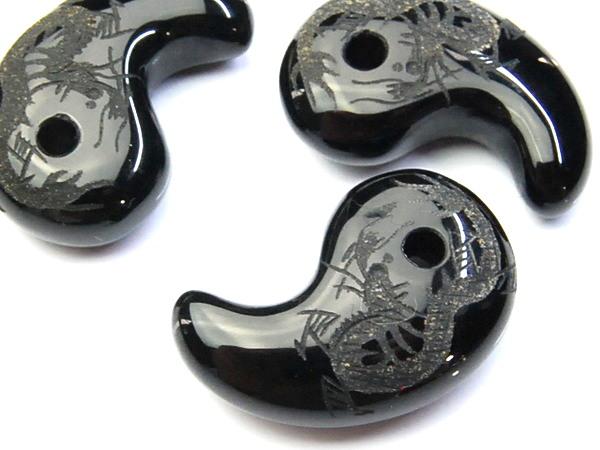 勾玉 粒売り 【素】彫青龍 オニキス 30x20mm [R1011]