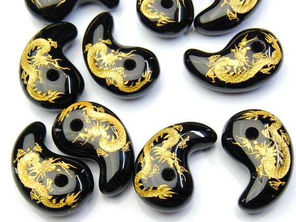 勾玉 粒売り 【金】彫青龍 オニキス 30x20mm [R1013]