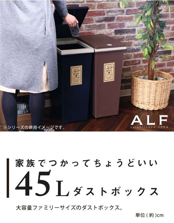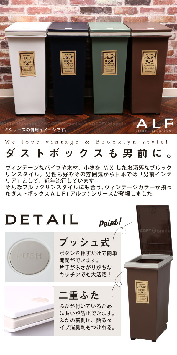 ゴミ箱 ふた付き プッシュ式ダストボックス アルフ 45L ごみ箱 おしゃれ 分別 45リットル キッチン フタ コロ付き ブルックリン 男前 86184 86185 86186 86187