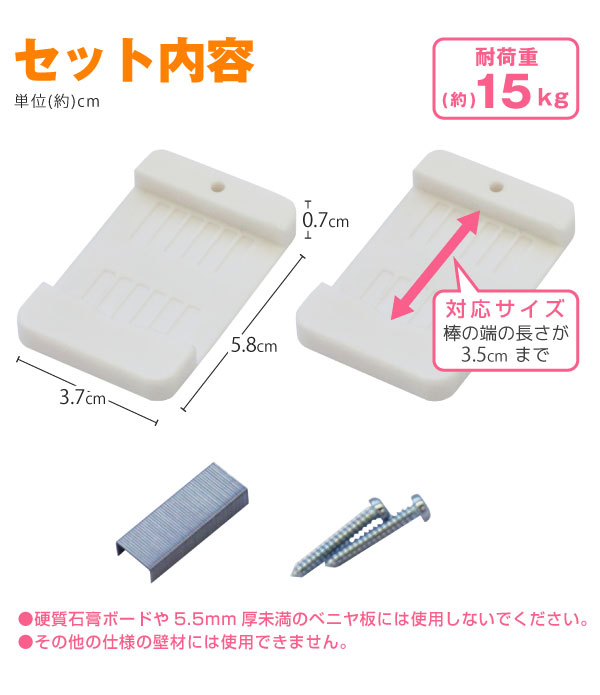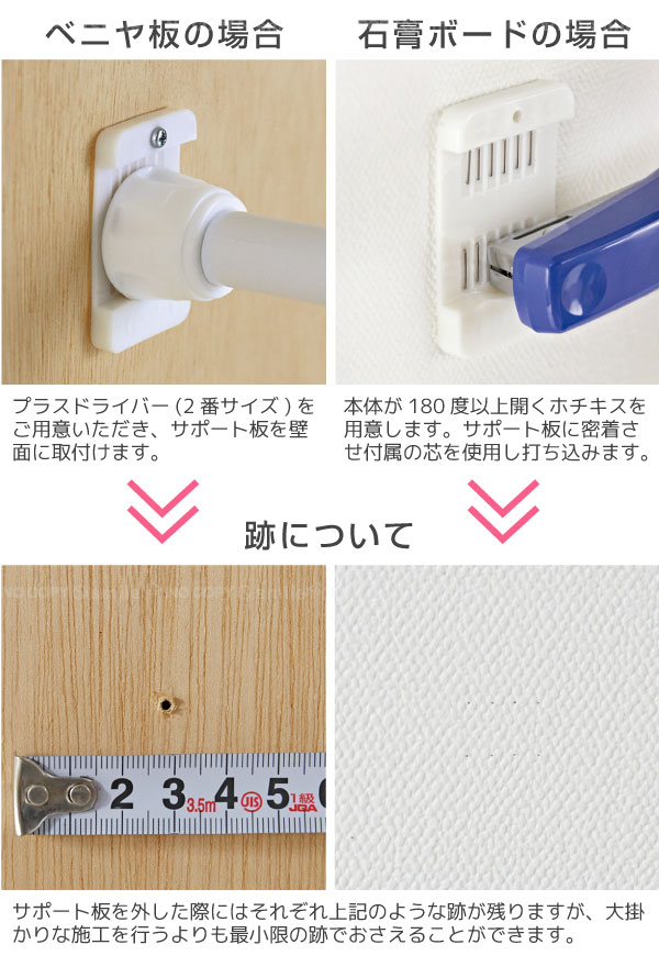 石こうボードやベニヤ板に固定し、突っ張り棒や突っ張り棚を強力に支えます。