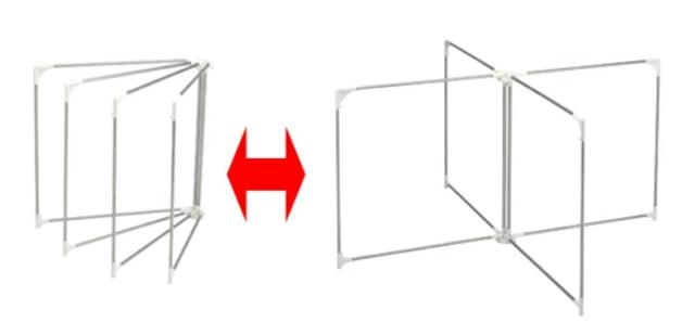設置スペースに合わせて干し部の角度を自由に調整できます。狭いところではコンパクトに干せ、広いところでは大きく広げて日当たりと風通しを良くすることができます。また、使わない時には折りたたんでコンパクトに収納できます。