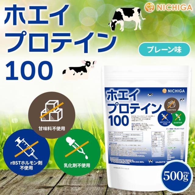 ホエイプロテイン100 プレーン味 500g 乳化剤不使用 rBST (牛成長ホルモン剤不使用) WPC [02] NICHIGA(ニチガ)