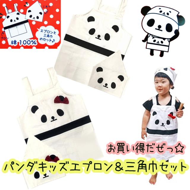 送料無料 訳あり キッズエプロン パンダ エプロン 三角巾つき キッズ こども用 料理教室 クッキング 親子 猫熊 コスプレ ぱんだ おそろい チャイナ 配達日時指定不可