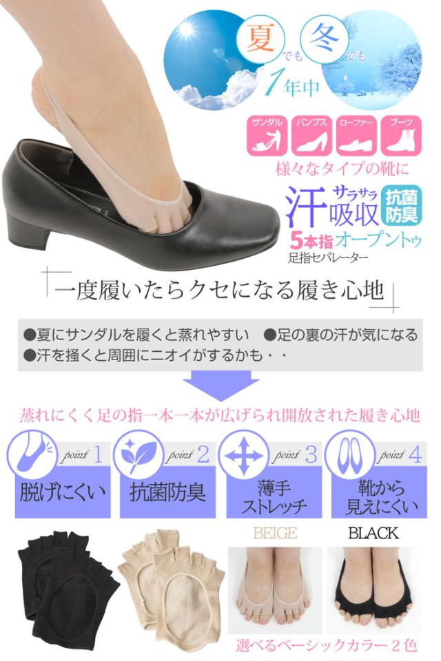 脱げにくい 足指セパレーター 同色2足セットブラック 足指セパレーター 同色2足セット スリム型で冷蔵庫 足指用ソックス 送料無料