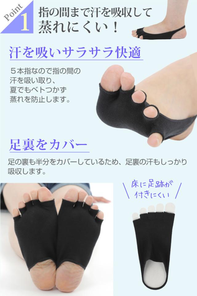 敷きに汗や油分がしみこむのを防ぐ5本指ソックス。足裏