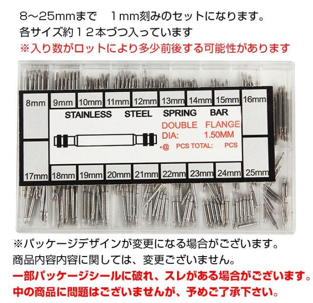 ■注意事項:バネ棒の各サイズは、それぞれ約12本づつ入っていますが、サイズにより、入り数にばらつきがございます。予めご了承下さい。
