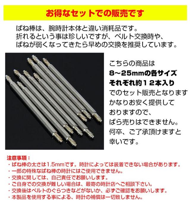 バネ棒 時計 腕時計 ベルト 交換用 ばね棒 各サイズセット | お得 交換 バネ棒 各サイズ お得 セット バネ棒 ばね棒 17mm 21mm 25mm 23mm 19mm 16mm 20mm 22mm 24mm 送料無料 修理 かっこいい リペア 腕時計修理 時計修理 腕時計工具 メンテナンス