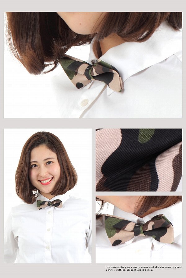 蝶ネクタイ迷彩 | 小物使いで大人の着こなしを/迷彩 ファッション ネクタイ 蝶タイ 迷彩柄 レディース ボータイ ボウタイ 棒タイ カモフラージュ柄 イメージチェンジ ファッション小物 楽ちん アジャスター付き カジュアル フォーマル かわいい 長さ調節可能 送料無料