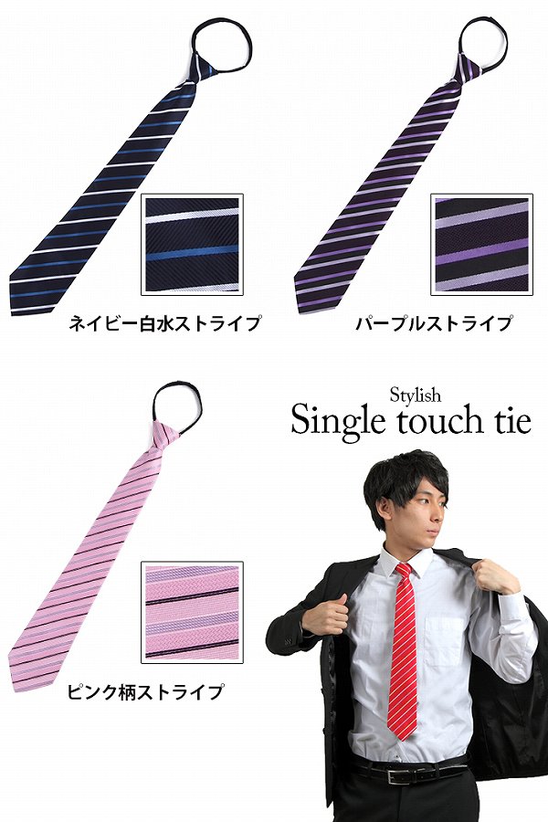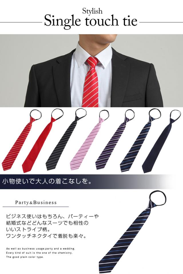 ■商品説明:とっても楽なワンタッチネクタイです。ネクタイの装着が面倒という方も、これなら簡単♪たまにしかネクタイをしない方の急な打ち合わせやフォーマルの場や、結婚式、二次会、冠婚葬祭などの急な場合に1本あると便利です。