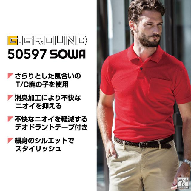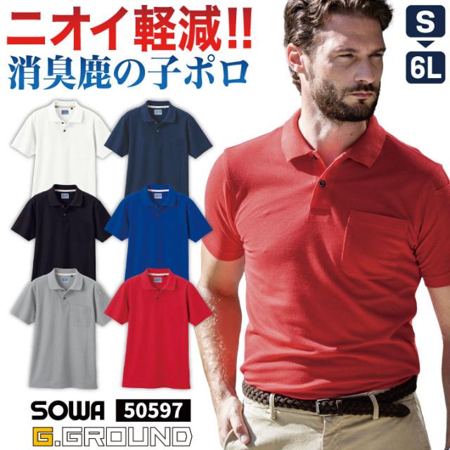 半袖ポロシャツ 作業服 作業着 作業シャツ W消臭 春夏 SOWA sw-50597