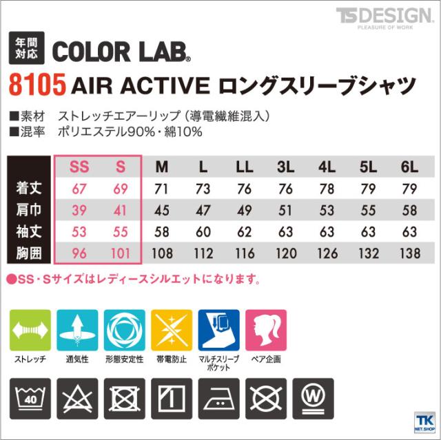 TS DESIGN 長袖シャツ 作業服 作業着 AIR ACTIVE 作業シャツ ストレッチ 春夏 秋冬 COLOR LAB. tw-8105