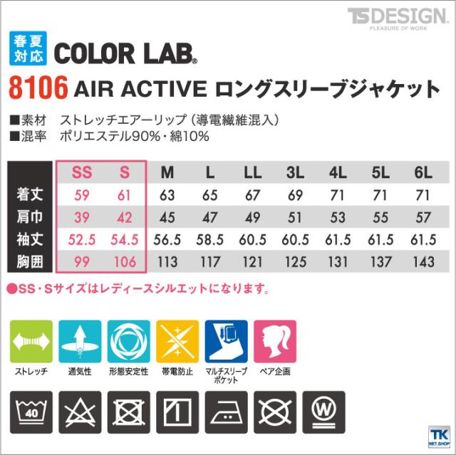 TS DESIGN ブルゾン 作業服 作業着 AIR ACTIVE 作業ジャンパー ストレッチ 春夏 COLOR LAB. ジャケット 長袖 tw-8106