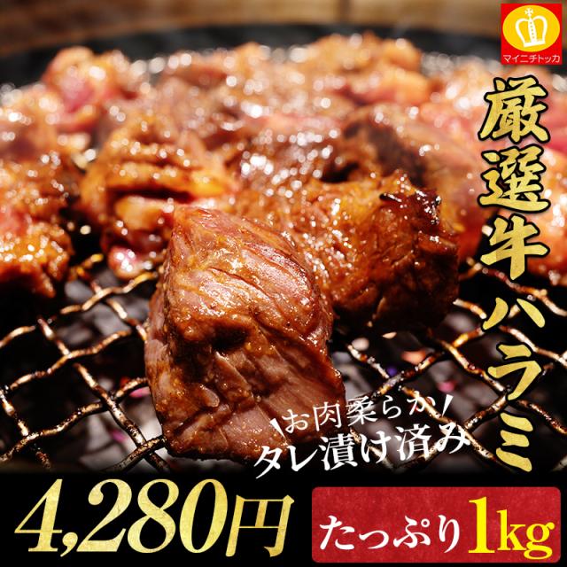焼肉 肉 タレ漬け 牛ハラミ 1kg たれ漬けやわらかハラミ1kg お試し 送料無料 バーべキュー 焼肉 牛肉 BBQ 丼ぶり 焼き肉 肉