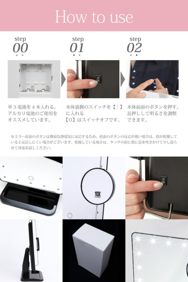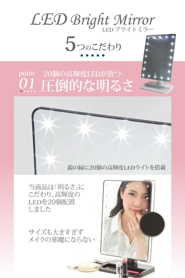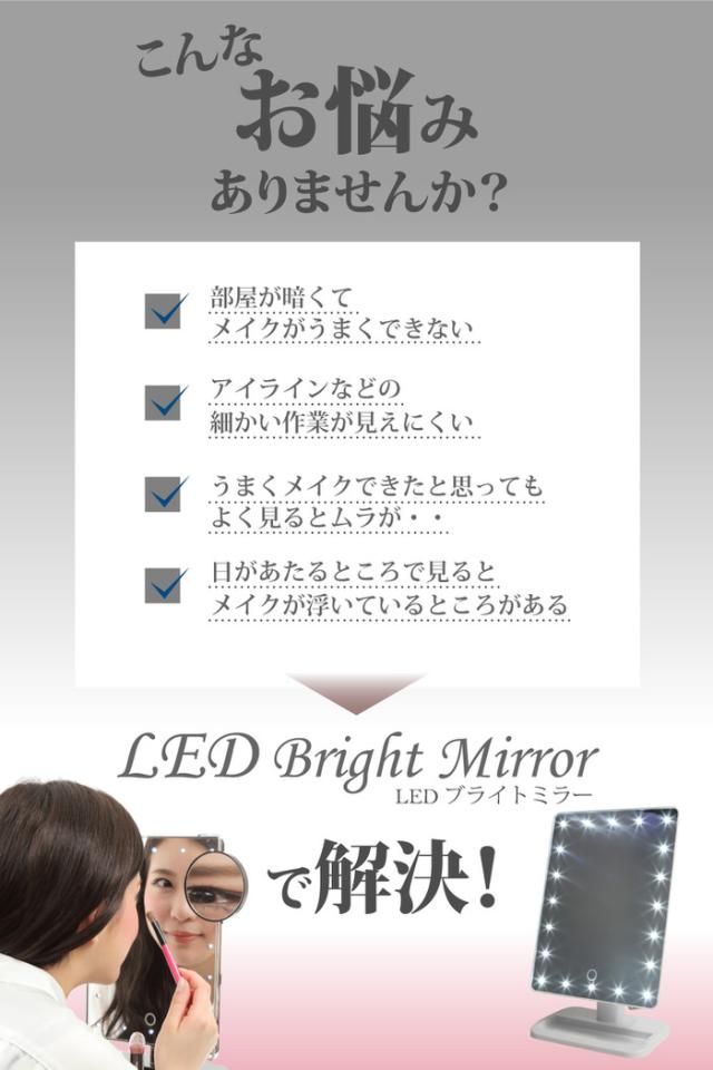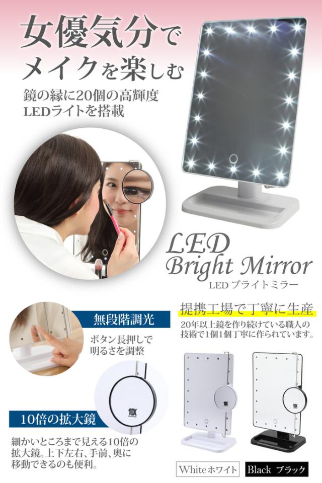 LEDブライトミラー 女優ミラー すぐ使える単三電池x4付き LEDブライトミラー 女優ミラー 壁掛け 鏡 ミラー 女優ミラー 化粧鏡 送料無料
