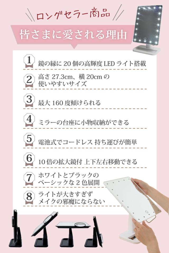 ■商品特徴:明るいLED20個と10倍拡大鏡付き。