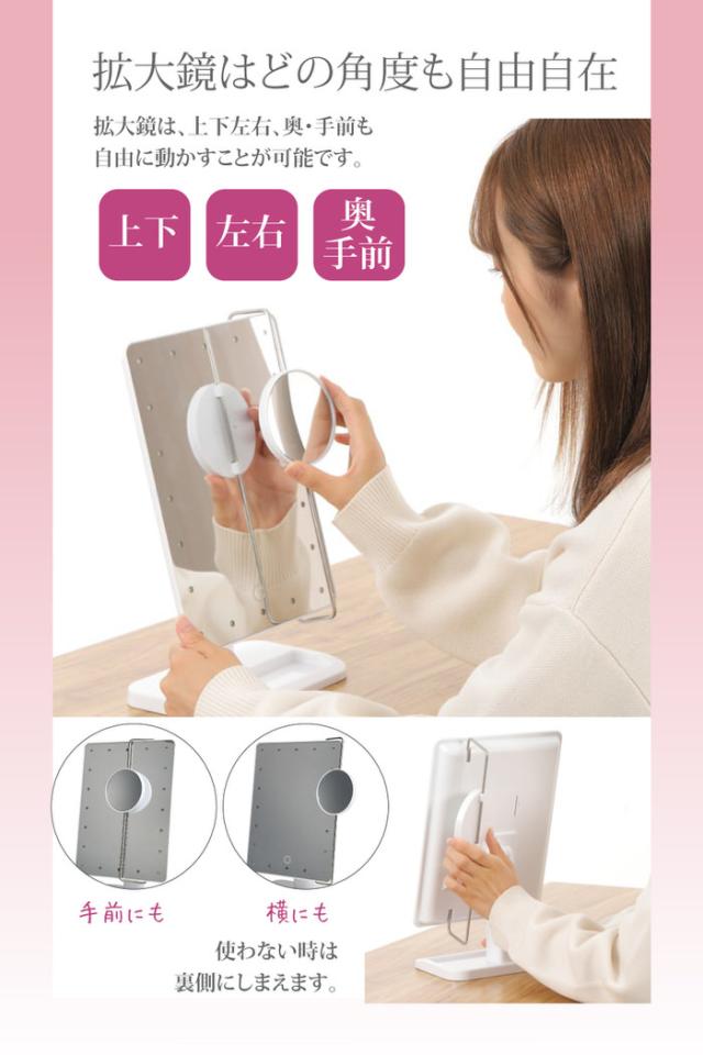 ■商品名:LEDライト+10倍拡大鏡付ミラー KTL800XT LEDブライトミラー