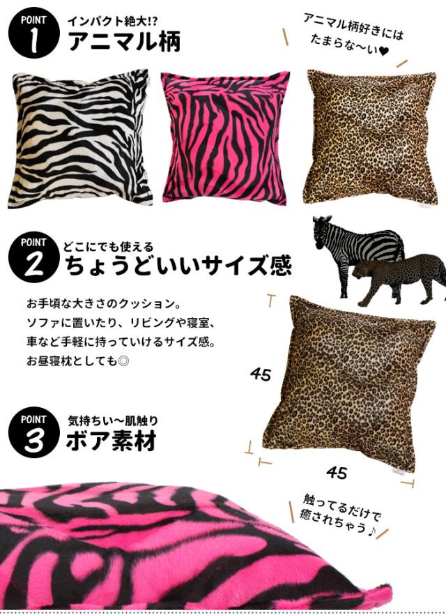 クッション 45×45 日本製 ボア素材 背当てクッション ゼブラ/ピンクゼブラ/ヒョウ ボア クッション 枕 フロアクッション チェア
