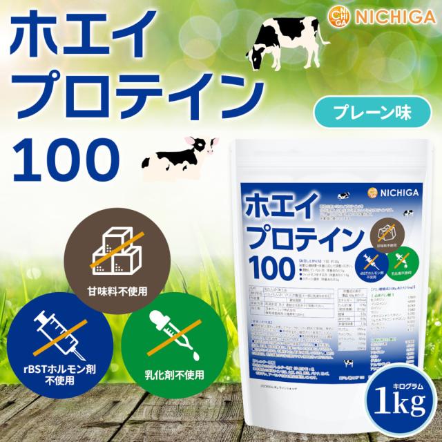 ホエイプロテイン100 プレーン味 1kg【送料無料(沖縄を除く)】 乳化剤不使用 rBST (牛成長ホルモン剤不使用) WPC NICHIGA(ニチガ) TK0