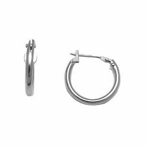 シンプルなワンタッチタイプの14金ホワイトゴールド製のフープピアス。シンプルで使いやすい大きさの14金ピアスはどんなスタイルにも似合う。カジュアルでもフォーマルでもメンズでもレディースでも使える。本物のホワイトゴールドなので、もちろん高級感もあり、プレゼントにも最適。ポストもシャフトも全部14金でできています。【スペック】