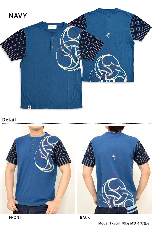 | 刺子巴ヘンリー半袖Tシャツ◆喜人 KJN-M00931 | ||||||||||||||||||||||||||||||