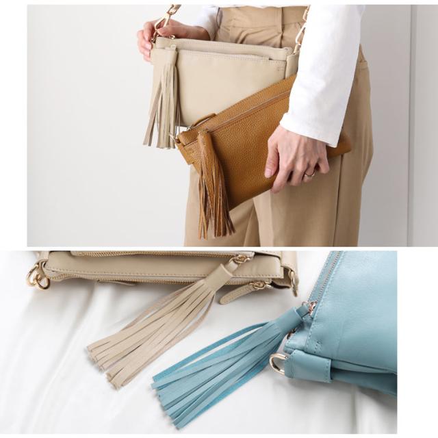 ※キーワード: 黒 ブラック ベージュ オフィス 通勤 ママ 卒業式 入学式 リアルレザー タッセル フリンジ 付き クラッチ 2way 小さい かわいい きれいめ お財布ポシェット 牛革 革 ショルダーバッグ ポシェット ミニバッグ