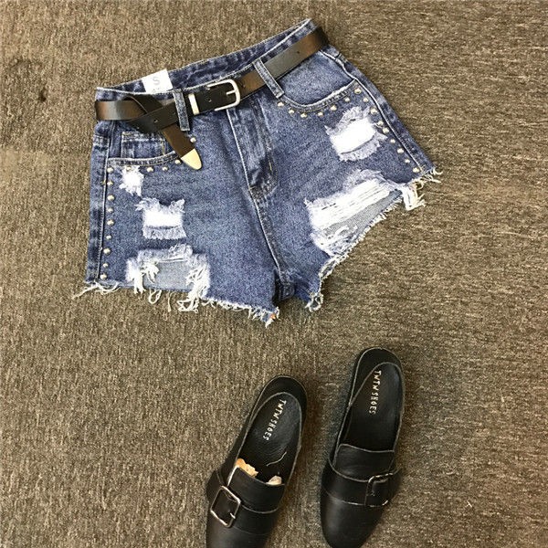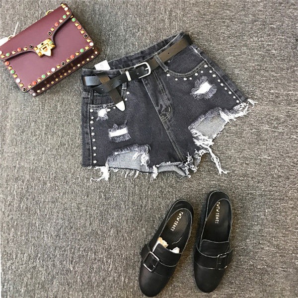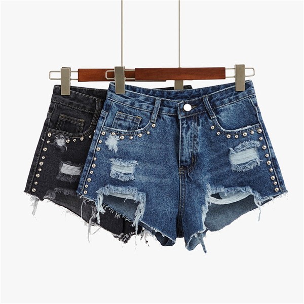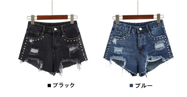 【メール便で送料380円】ホットパンツ デニム ミニ セクシー レディース ショートパンツ ジーンズ ダメージ加工 短パン スタッズ付き 美