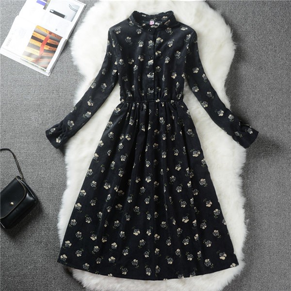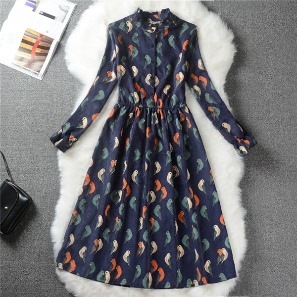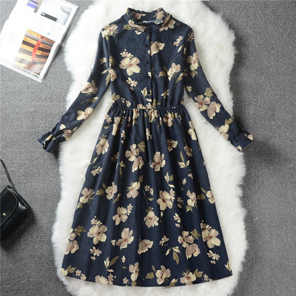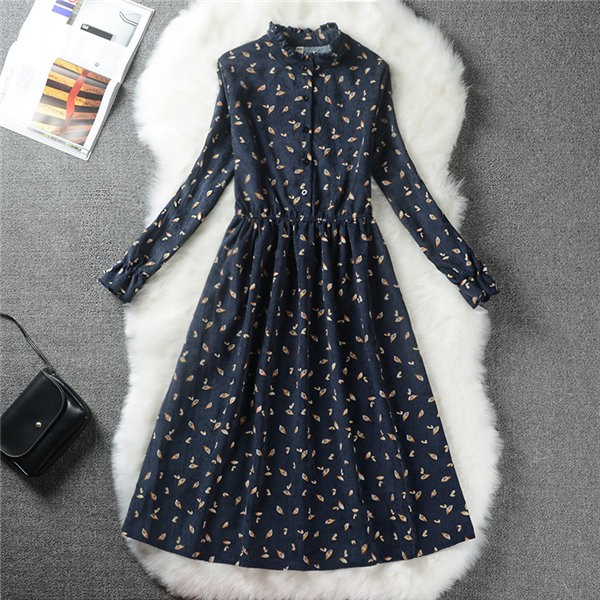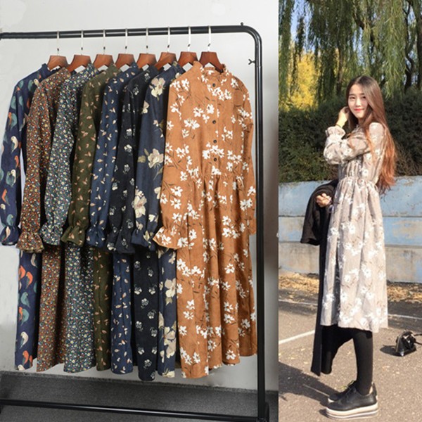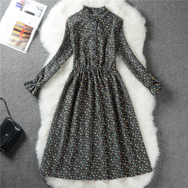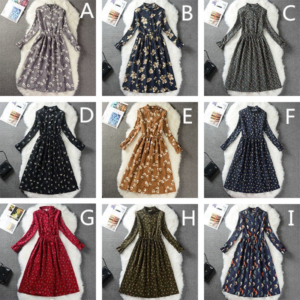 送料無料 シャツワンピ ワンピース レディース 長袖 フレアワンピ aライン フレアー スタンドカラー 花柄 夏 春ワンピース ミディアム丈 膝丈 大