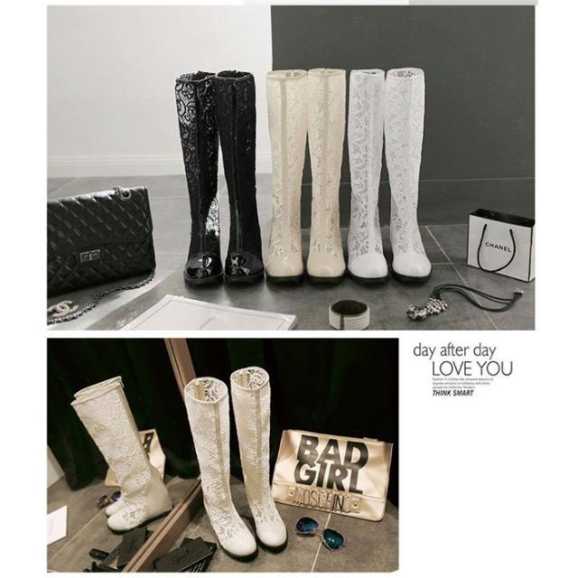 サマーブーツ サンダル ブーツサンダル ブーサン レース 夏 美脚 ブーツ インヒール ハイヒール レディース靴 ロングブーツ メッシュ 花
