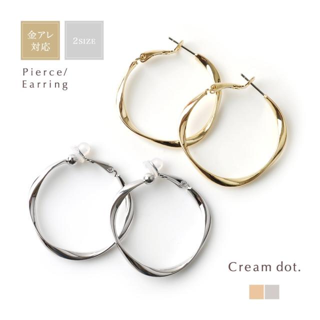 フープを捻ったシンプルお洒落なデザインが大人っぽい、選べる2サイズのピアス/イヤリング。