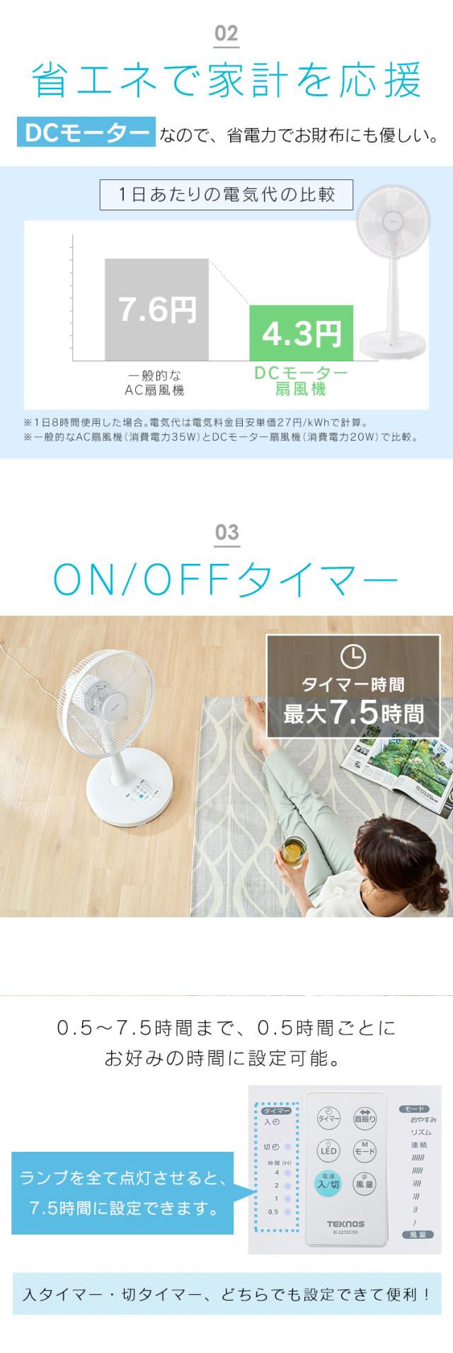 扇風機 リモコン付き 首振り リビング扇風機 DCモーター収納リモコン 白 TEKNOS KI-327DC(W) KI-327DC(G)GY リビング DCモーター 送料無料