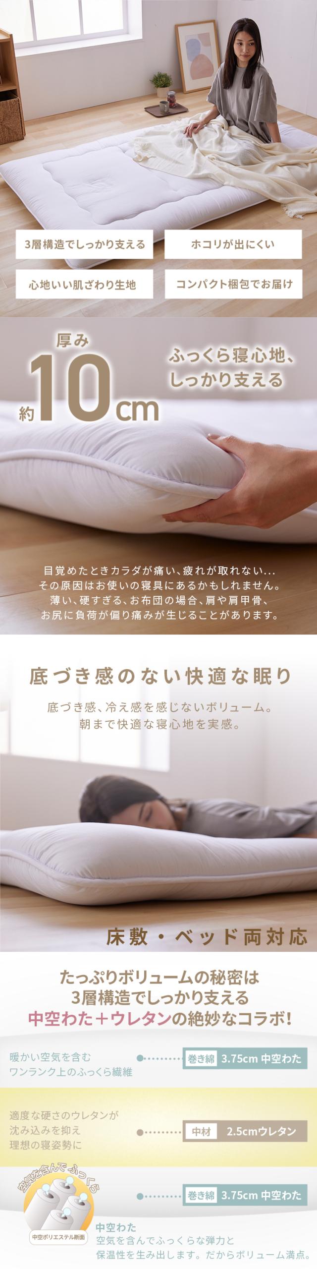 敷布団 シングル 布団 敷き布団 厚さ10cm 3層構造 来客用布団 コンパクト 三つ折り 収納 軽量 敷ふとん ピーチスキン加工 ホコリが出にくい 春 夏 秋 冬 オールシーズン 一人暮らし 来客用 新生活 ボリューム3層敷き布団 *