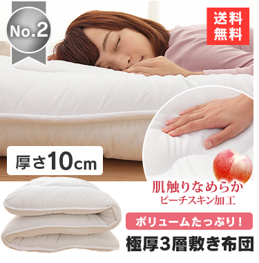 ウレタン入りの敷き布団で体をしっかり支え、ボリューム感たっぷりの敷き布団です。