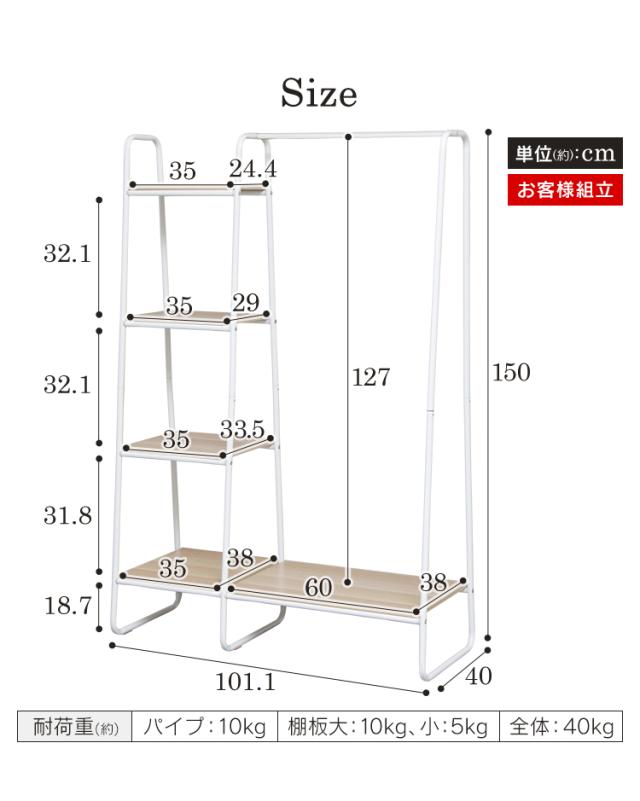 パイプ部分10kg、棚板(大)10kg、棚板(小)5kg