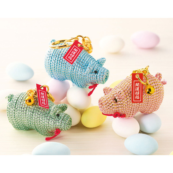 ◆キット内容:ブタ型容器、メタリックヤーン、刺し目、赤紐、9ピン、ワイヤー、キーホルダー金具、鈴、運気上昇札