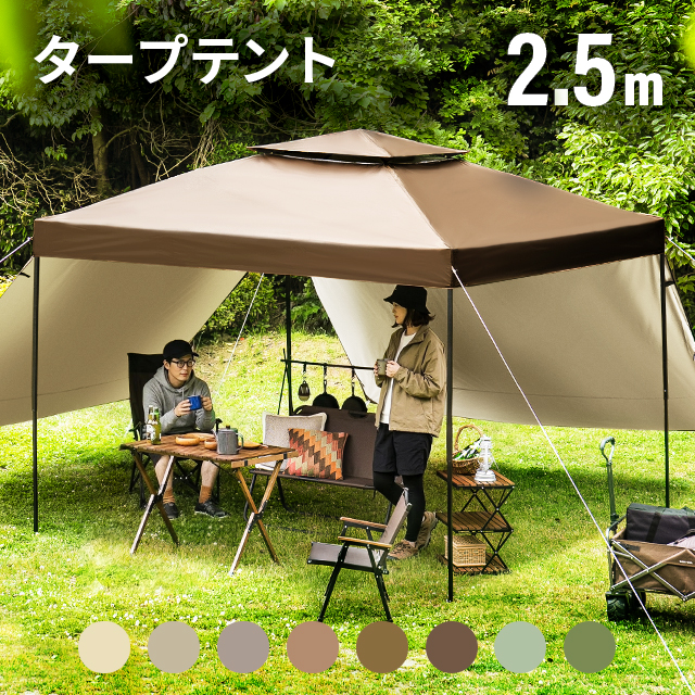 テント タープテント 2.5m ワンタッチタープテント 【3ヵ月保証】簡単 大型 軽量 日よけ 日除け UVカット 防水 おしゃれ アウトドア レジャー キャンプ バーベキュー イベント用 運動会 花見 ソロキャンプ