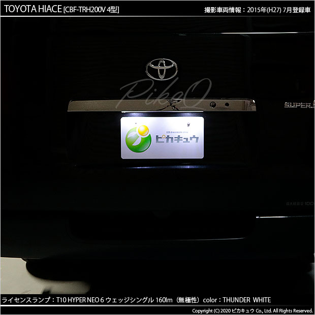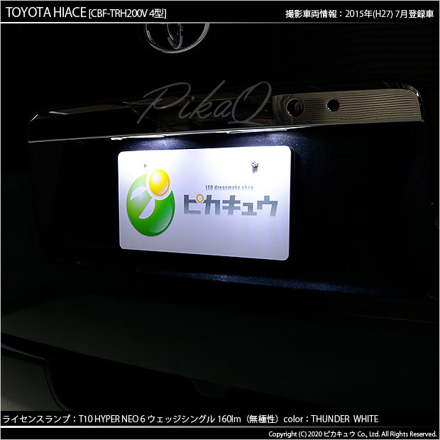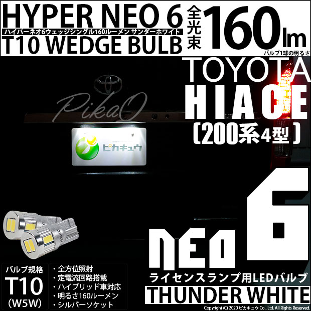 トヨタ ハイエース (200系 4型) 対応 T10 バルブ LED ナンバー灯 ライセンスランプ HYPER NEO 6 160lm サンダーホワイト 6700K 2個 2-C-10