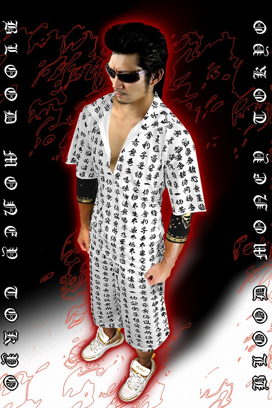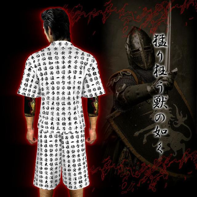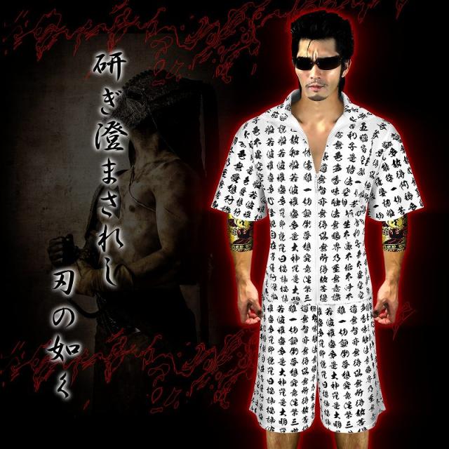 送料無料 ポイント2倍 半袖 セットアップ ジャージオラオラ系悪羅悪羅系 ヤクザヤンキーメンズ上下服 17009 白×黒 般若心経 和柄 夏物 悪党の店 バースジャパン BIRTHJAPAN