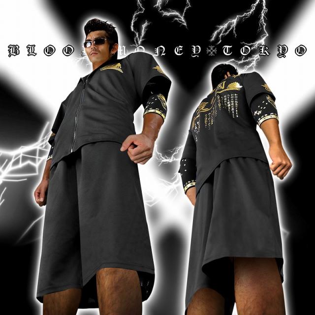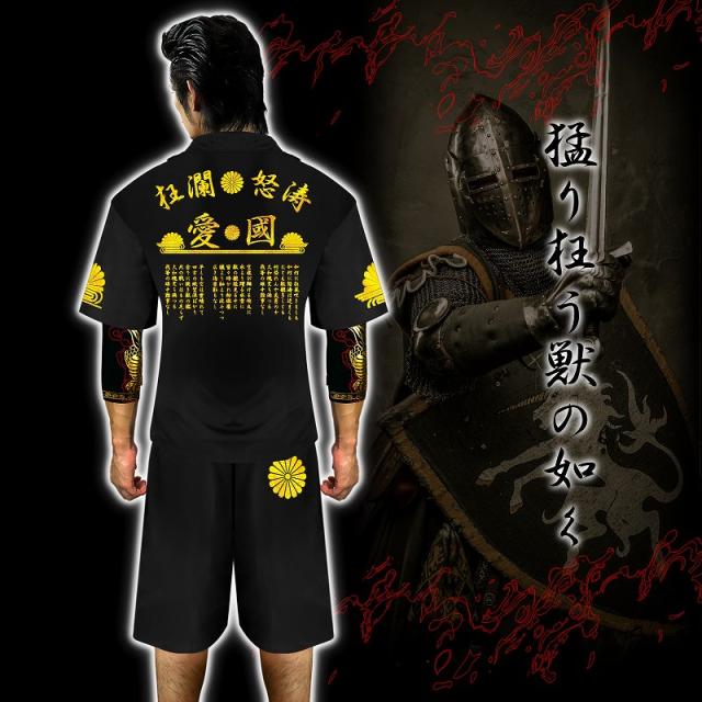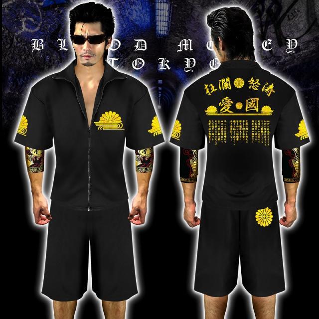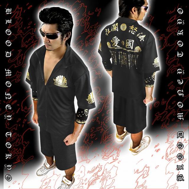 送料無料 ポイント2倍 半袖 セットアップ ジャージ オラオラ系悪羅悪羅系ヤクザヤンキーメンズ上下服 17010 黒×金 愛国右翼 和柄 夏物 悪党の店 バースジャパン BIRTHJAPAN