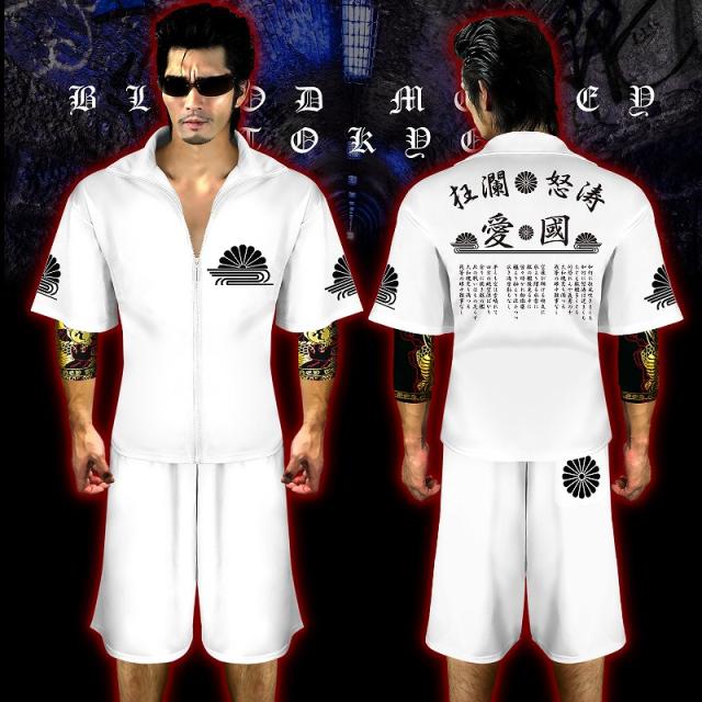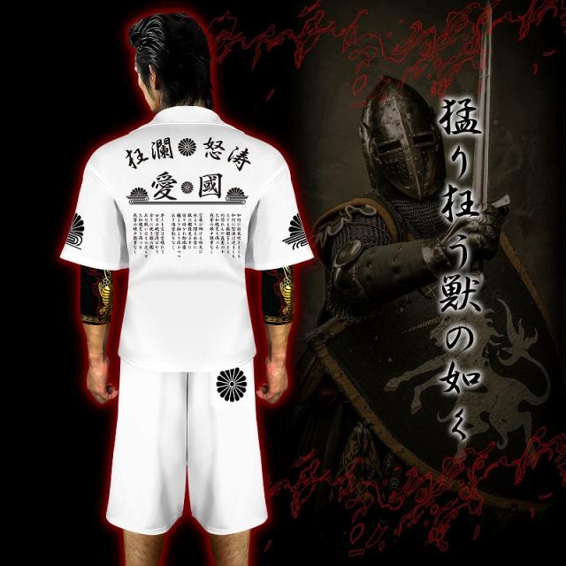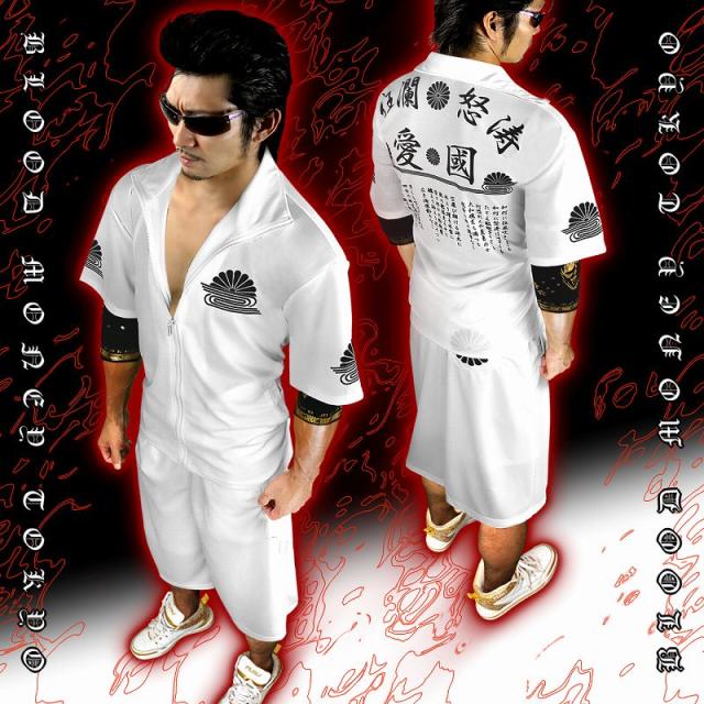 送料無料 ポイント2倍 半袖 セットアップ ジャージ オラオラ系悪羅悪羅系ヤクザヤンキーメンズ上下服 17010 白×黒 愛国右翼 和柄 夏物 悪党の店 バースジャパン BIRTHJAPAN