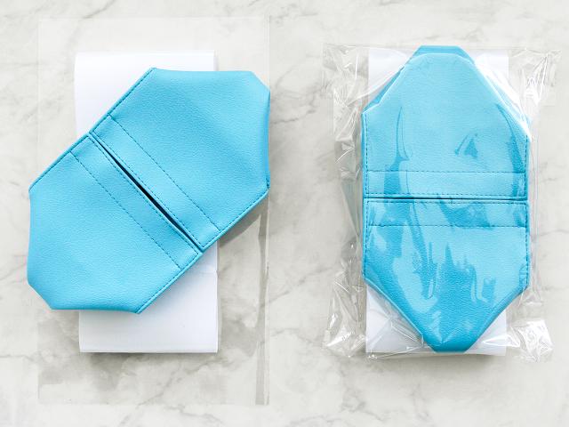 ◎形が崩れない秘密は、専用の特殊プラスチックが付属しているため。このプラスチックが付属されているので、最後の一枚になっても四角を保つことができます。
