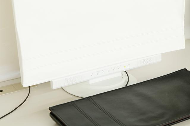 パソコンを使わない時は上の写真のようなイメージでモニターをホコリや傷等から守ってくれます。